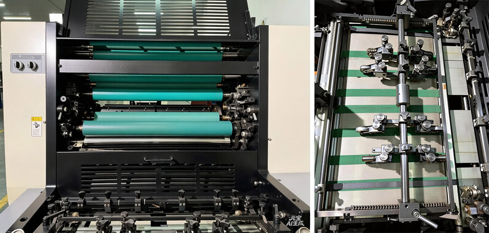 دستگاه چاپ افست تک رنگ کاغذ ضخیم A3 به دلیل ویژگی های درجه یک که آن را قابل اعتماد و کارآمد می کند متمایز است. این یک ساختار مکانیکی سنگین دارد - پایه یکپارچه چدنی، صفحات جانبی و غلتک‌ها - بنابراین قوی، سفت، مقاوم در برابر سایش و ضربه‌گیر است. این بدان معناست که حتی در سرعت‌های بالا هم روان کار می‌کند و فشار چاپ را هر بار ثابت نگه می‌دارد. سیلندرهای چاپ کرومی به خوبی در برابر سایش مقاومت می کنند و به دستگاه کمک می کنند تا بیشتر دوام بیاورند و هزینه های نگهداری روزانه را کاهش دهند. بلبرینگ‌های با دقت بالا و چرخ‌دنده‌های مارپیچ زمین شده، انتقال نیرو را ثابت و روان، بدون لرزش یا ایراد می‌کنند. ایمنی نیز یک اولویت است - دستگاه‌های ایمنی در نصب صفحه، تمیز کردن، پوشش‌های محافظ و تنظیم درب تعبیه شده‌اند تا اپراتورها و ماشین را ایمن نگه دارند. کنترل پنوماتیک برای کلاچ و غلتک جوهر، عملکرد را قابل اطمینان تر می کند، بدون مشکل غیر منتظره. مکانیسم نصب صفحه دارای موقعیت و کشش سریع است که در زمان نصب صرفه جویی می کند. قطعات حمل و نقل کاغذ آن - سر تغذیه، میز کاغذ، راهنمای جلو، و گیره - همه انواع کاغذ، از ضخیم تا نازک را کنترل می کند. تغذیه کننده کاغذ با بازوی چرخشی در حین کار با سرعت بالا همه چیز را صاف نگه می دارد و سیلندرهای صفحه و پتو با حلقه های حامل تضمین می کنند که چاپ با کیفیت بالا در سرعت انجام شود. گیره های دو فنر کاغذ را محکم نگه می دارند، بدون لیز خوردن، حتی در کارهای طولانی چاپ. بعلاوه، استفاده از سیستم تمیز کردن غلتکی جوهر نیمه اتوماتیک آسان است - زمان تمیز کردن را کاهش می دهد، تغییرات رنگ جوهر را سرعت می بخشد، حجم کار را کم می کند و راندمان تولید را افزایش می دهد. همچنین دارای کنترل PLC و صفحه نمایش لمسی با رابط کاربری ساده و آسان برای اپراتورها است.