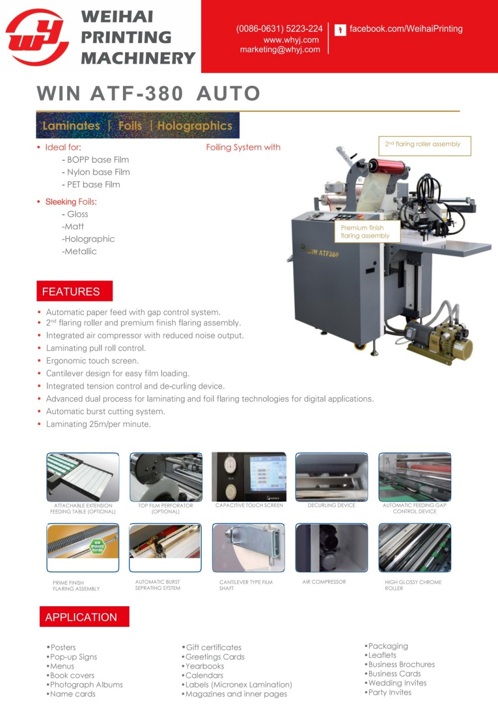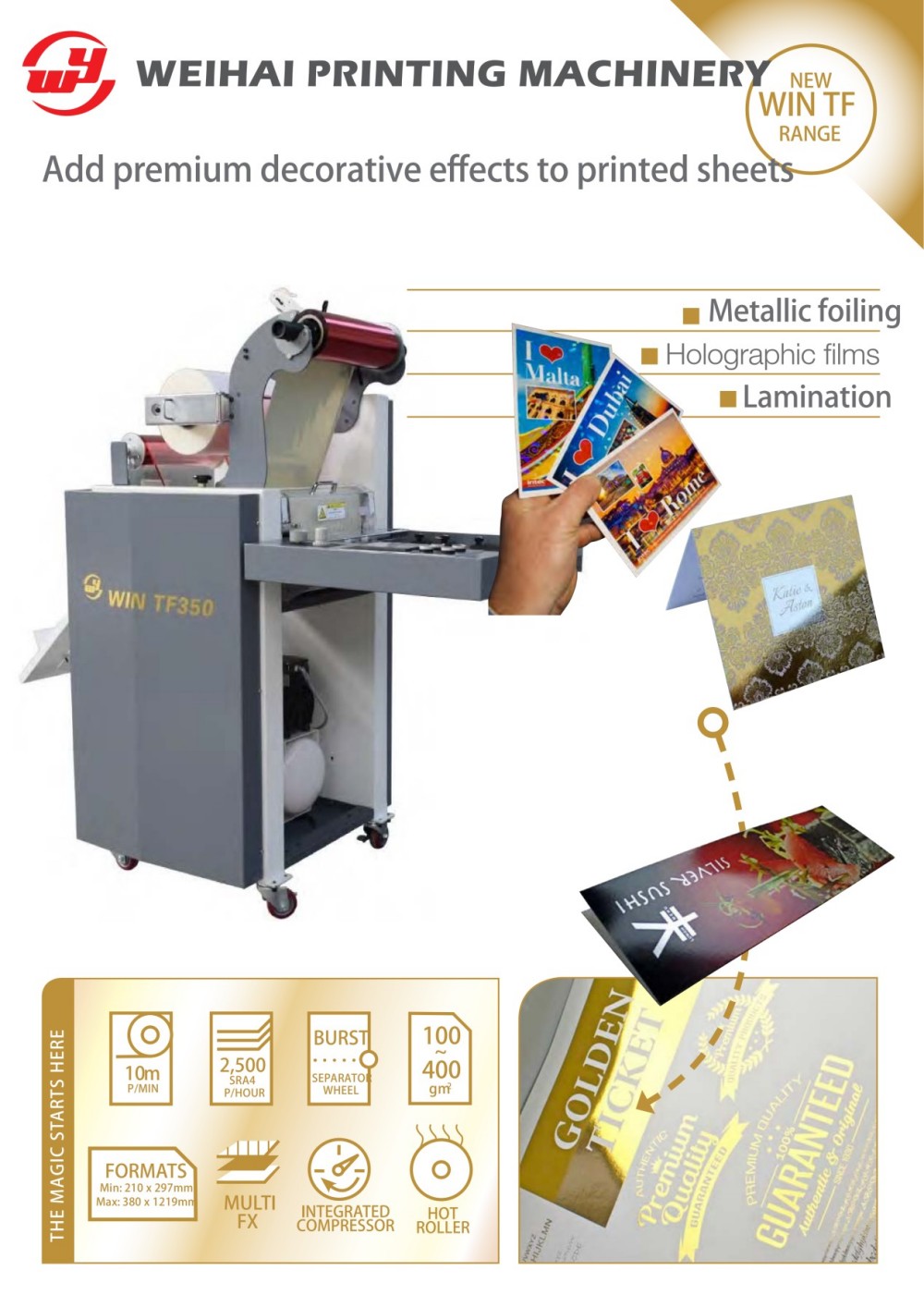 ماشین لمینت و فویلینگ بدون پلاک که توسط Weihai Printing Machinery Co., Ltd. طراحی و تولید شده است، یک دستگاه لمینت و فویلینگ فلزی با تغذیه کاغذ دستی است. طراحی جمع و جور آن باعث صرفه جویی در فضا و در عین حال بسته بندی در عملکرد لمینیت و فویل فلزی می شود - ایده آل برای مشاغلی که به دنبال اضافه کردن نکات تزئینی در خانه هستند. این مواد چاپی معمولی را به محصولات نهایی نفیس تبدیل می‌کند، که به طور یکپارچه با برنامه‌های کاربردی دیجیتال بر حسب تقاضا و چاپ‌های افست لیتوگرافی سنتی کار می‌کند. برای به دست آوردن بهترین نتایج ممکن، به یک دستگاه کنترل الکترونیکی مجهز شده است که فشار غلتک و دمای گرمایش را در حین کار تنظیم می کند. این تنظیمات بر اساس عواملی مانند سرعت اجرا، ضخامت کاغذ و الگوهای طراحی است. این دستگاه ثابت کرده است که یک ابزار درجه‌بندی و لمینیت بدون صفحه‌سازی است و به مشتریان کمک می‌کند ارزش قابل‌توجهی به محصولات خود اضافه کنند. مشتریان همچنین طیف گسترده ای از فیلم های لمینیت و فویل های فلزی را برای انتخاب دارند تا بتوانند تمام نیازهای تزئینی خود را برآورده کنند. بعلاوه، دارای یک میز تغذیه کاغذ گسترده است که برای بنرها و مواد چاپی بسیار بلند عالی است.